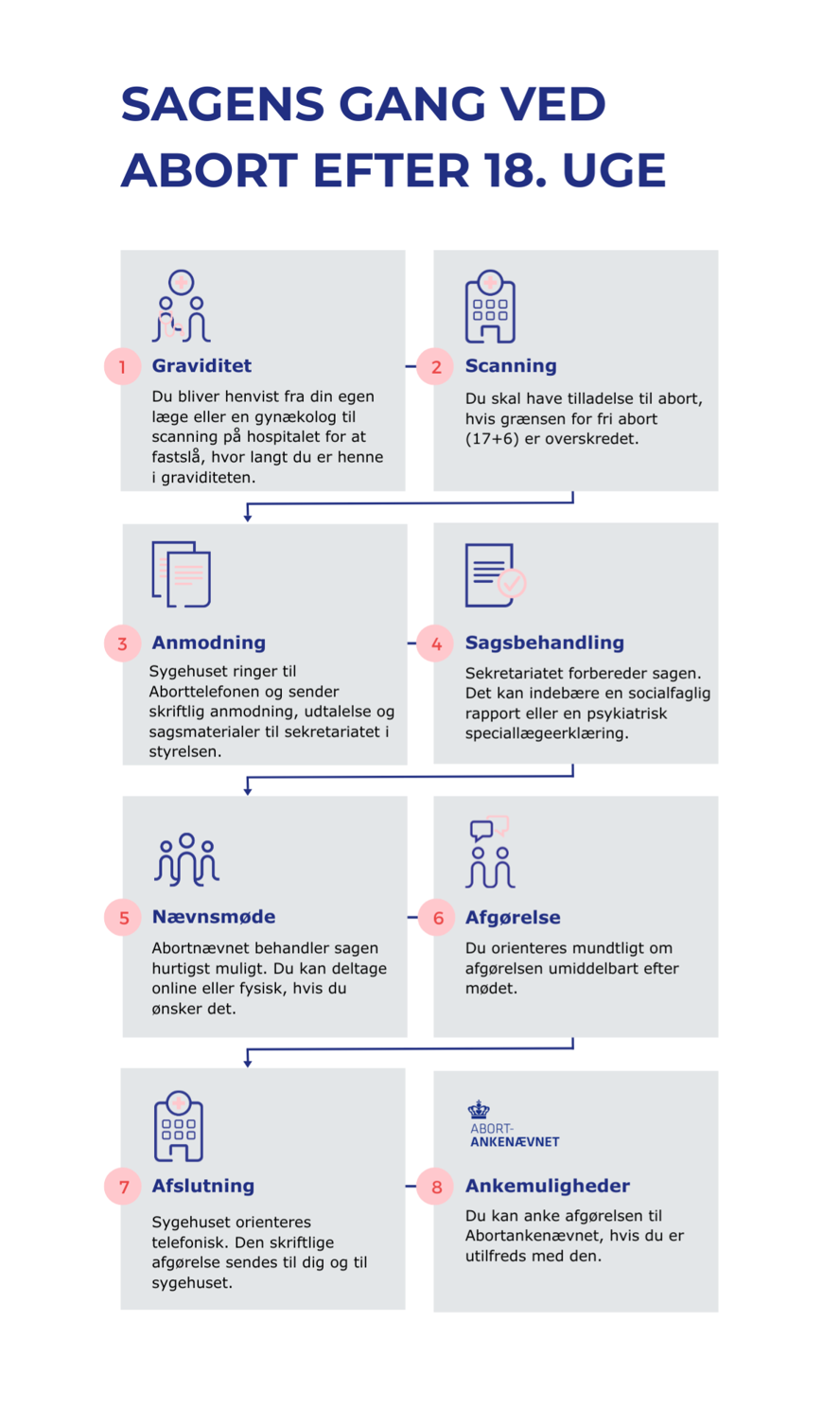 Her på siden, har vi forklaret det, du har brug for at vide, når du anmoder om abort efter uge 18. Reglerne for abort i Danmark kan ses i sin helhed i Sundhedsloven.